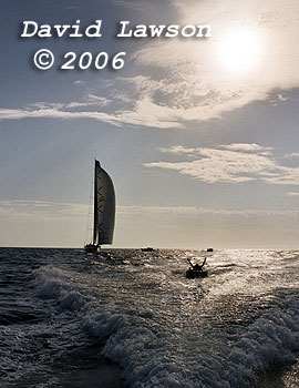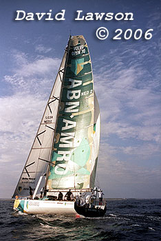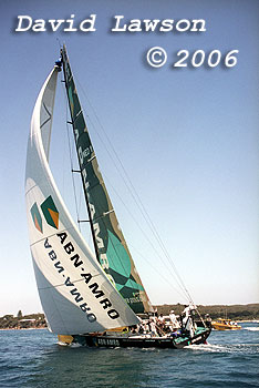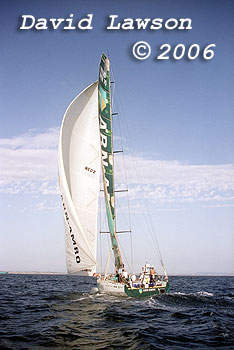 ABN AMRO 1 sailing in light breeze on Port Phillip Bay after passing through The Rip, January 21, 2006.