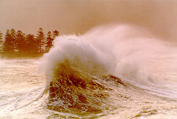 from Wollongong Harbour's breakwater meets the next wave. High seas