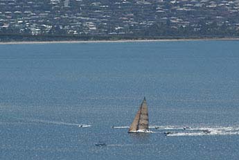 close hauled at 13 knots to cross the bay to gradually open the gap. In
