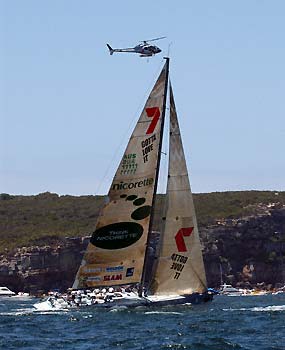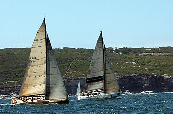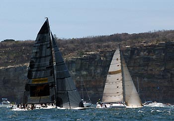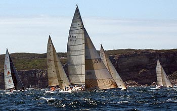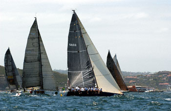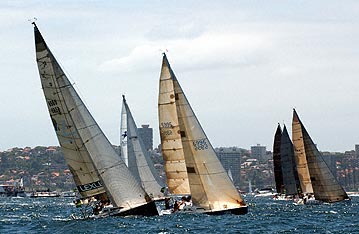Eleni to left, Chutzpah behind Helsal II, an unknown Sydney 38 and Addiction to the right.