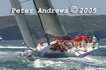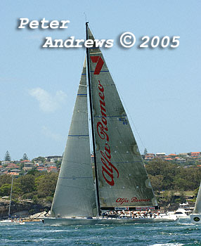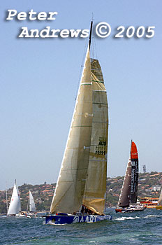 AAPT2, something had possibly happened with the main halyard. Just a second before this shot was taken the whole mainsail dropped from its fully set position, roughly two metres above from where it is seen here. Whatever the situation, the race was over for