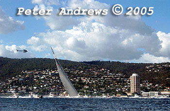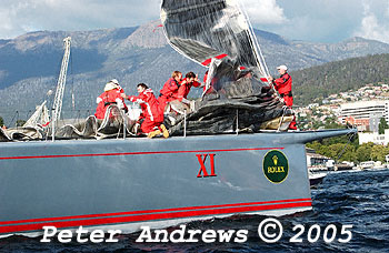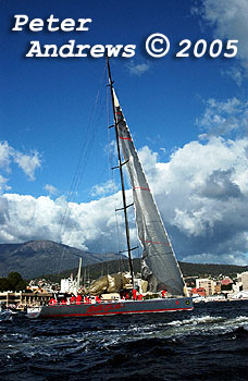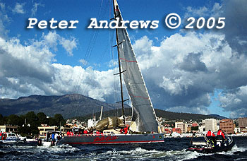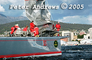 Wild Oats XI with Hobart in the background.