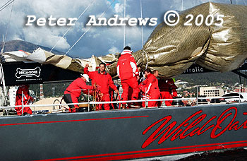 Wild Oats XI off Sandy Bay.