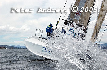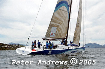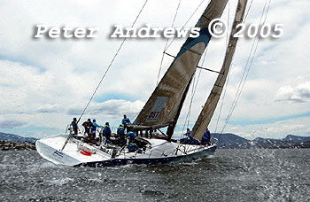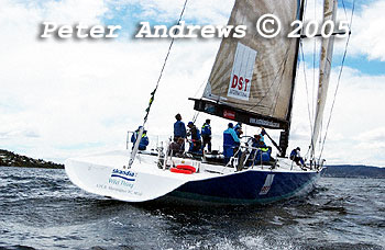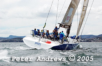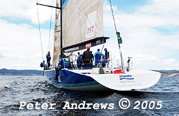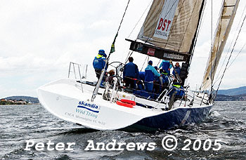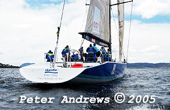 Skandia slowly working up the Derwent River towards the hobart finishing line.
