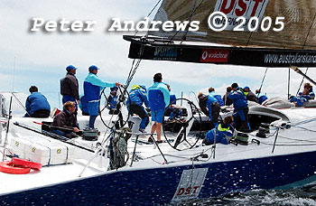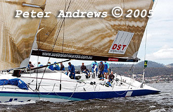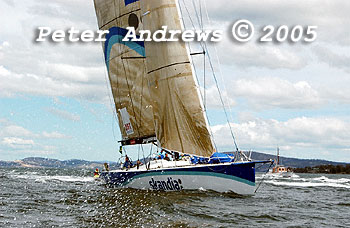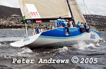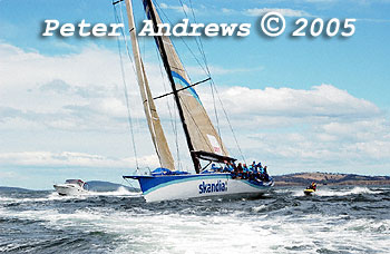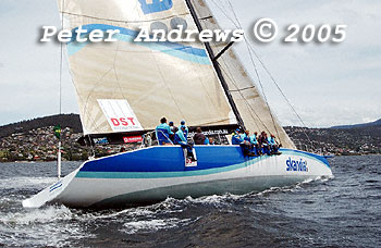Skandia working up the Derwent River towards the Hobart finishing