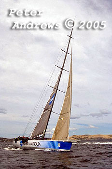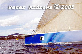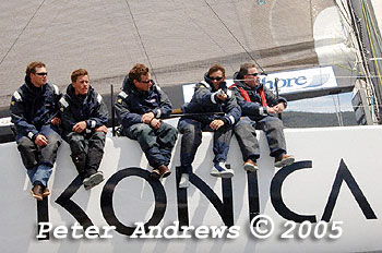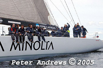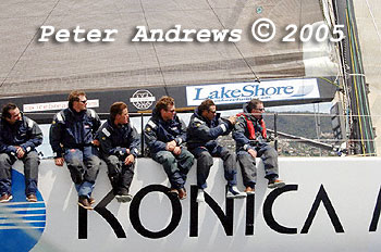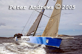 Out on the rail on Konica Minolta while working up the Derwent River to the Hobart finishing line.
