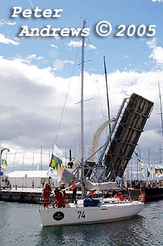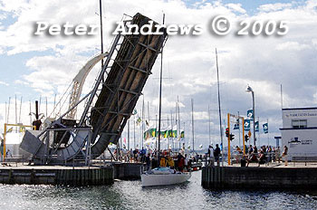 Ted Tooher's Beneteau 40.7, Chancellor passes under the Constitution Dock draw bridge.