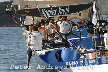 Sean Langman and his Noakes Youth crew on “AAPT”, patiently wait for any slight puff of breeze to get the boat moving