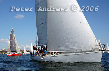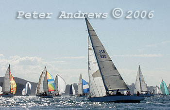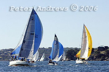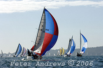 Gregg Watson's "Naughty Call" and the BMW Winter Series fleet under spinnaker.