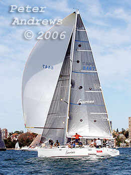 The Ros Morgan and Andrea Banks boat, You're Hired ahead of Michael Cranitch's and Ray Wallace's Broomstick.