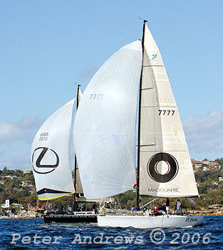 Geoff Bonus' Sydney 38, "Calibre" under spinnaker and Mayo, Rainsford and Lawrence's "Team Lexus".