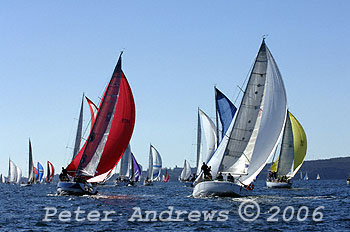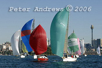 From left to right: David Bates' "Supernova"; Annette and Robin Hawthorn's "Imagination"; Paul Clitheroe's "Balance"; Guy Irwin's "Clewless"; Chris Sligar's "Very Tasty"; Peter Blair and Ross Gardyne's "Time Out"; Matthew Brown's "Gripster"; Warwick Sherman's "Occasional Coarse Language"; and the Rum Consortium's "Phillip's Foote Witchdoctor".