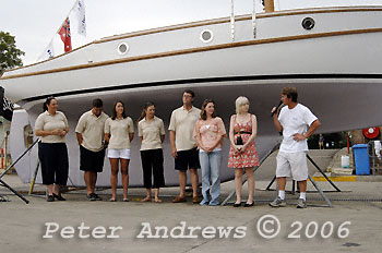 With the Hobart crew to launch Maluka are Sean Langman's daughter Nicole (to the right next to Sean) and the daughter of the previous owner of Maluka, Kelly Thompson.