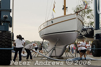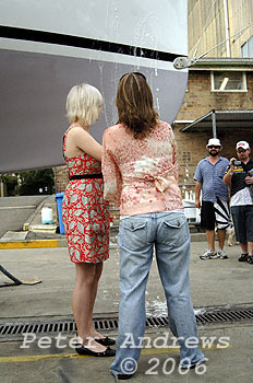 Maluka gets a traditional champagne launch at Sydney's Woolwich Dock.