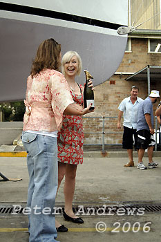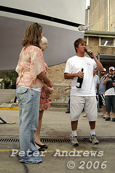 Sean with his daughter Nicole and Kelly Thompson after the the traditional champagne launch.