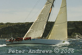 Charles St Clair Brown and Bill Buckley's "Maximus" enters the Tasman Sea after the start of the 2006 Rolex Sydney to Hobart Yacht Race.