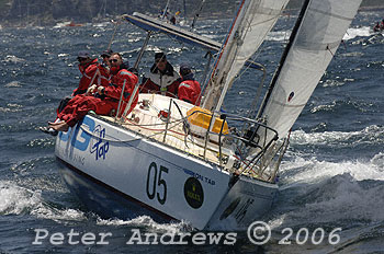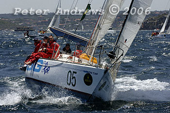 Marc Stuart's Duncanson 34 "BSG On Tap" outside the heads after the start of the 2006 Rolex Sydney to Hobart Yacht Race.