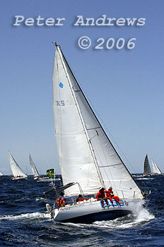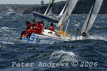 Marc Stuart's Duncanson 34 "BSG On Tap" outside the heads after the start of the 2006 Rolex Sydney to Hobart Yacht Race.