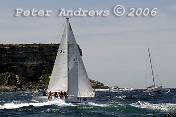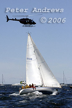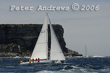 Alex Whitworth's Brolga 33 "Berrimilla" at the foot of North Head after the start of the 2006 Rolex Sydney to Hobart Yacht Race.