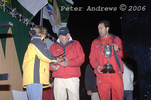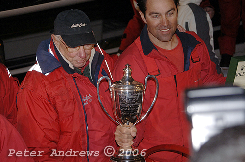 Mark Richards, with the Illingworth Trophy for Line Honours.