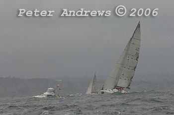 Geoff Ross's Chinese built Reichel / Pugh 55 "Yendys" and the CYCA start boat.