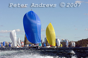 yellow spinnaker, after the start of the 2007 Audi Sydney to