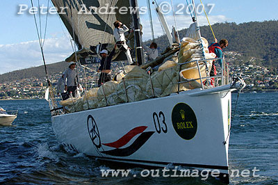 is the third boat across the finishing line for the 2007 Rolex Sydney Hobart Yacht Race.